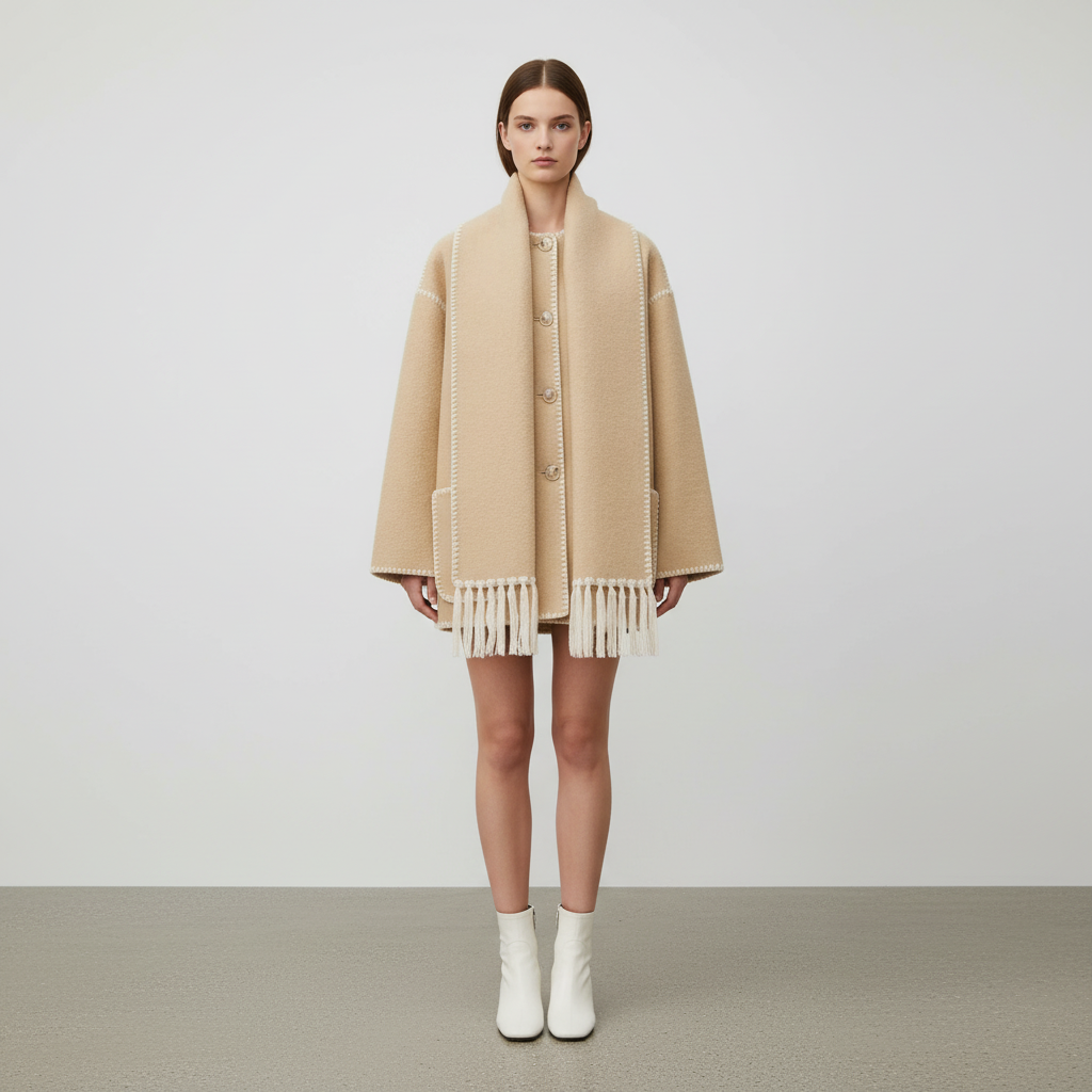 Półdługi, luźny krój emanuje klasyczną elegancją. Subtelne detale podkreślają kobiecą sylwetkę.