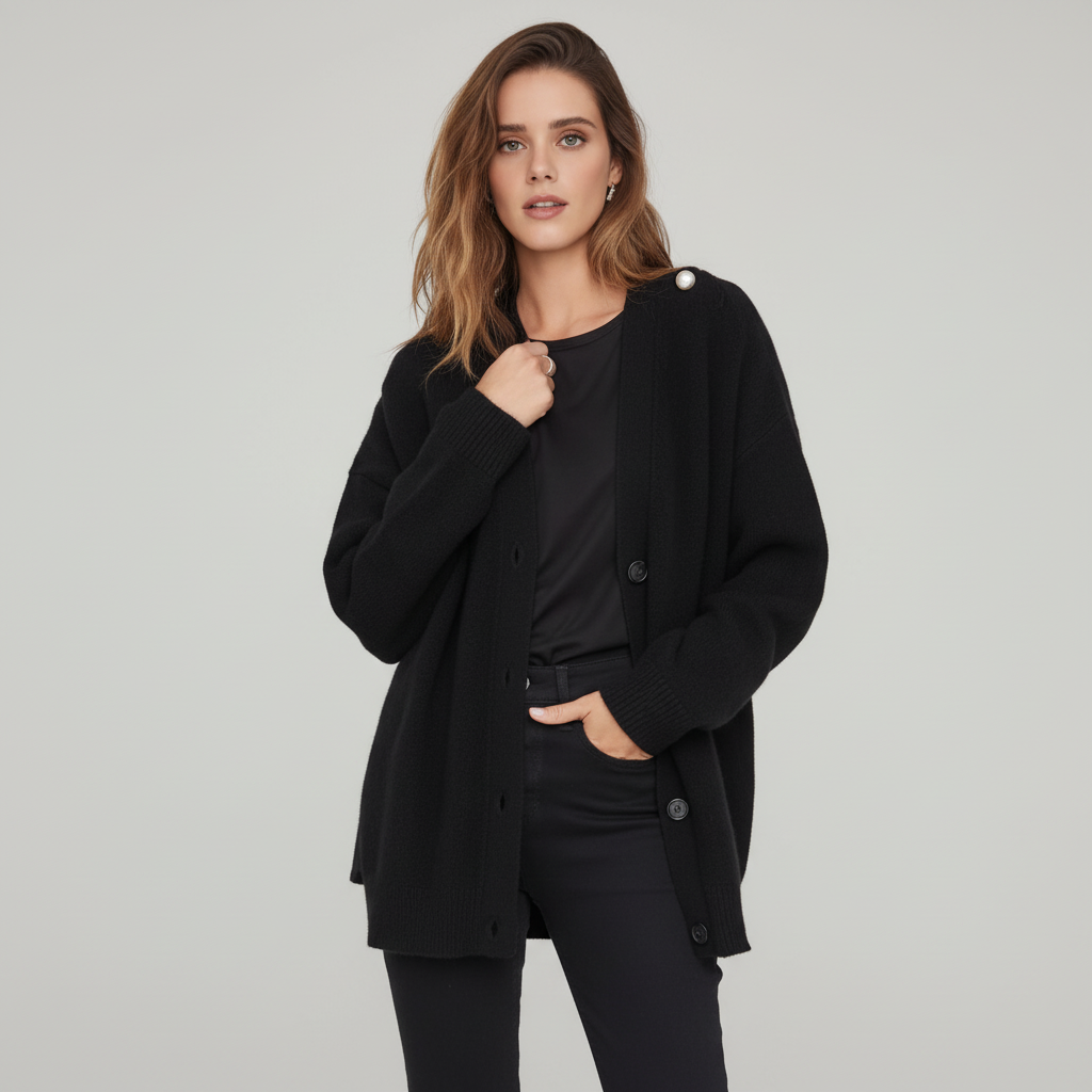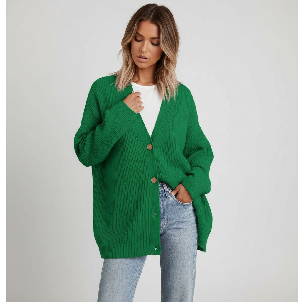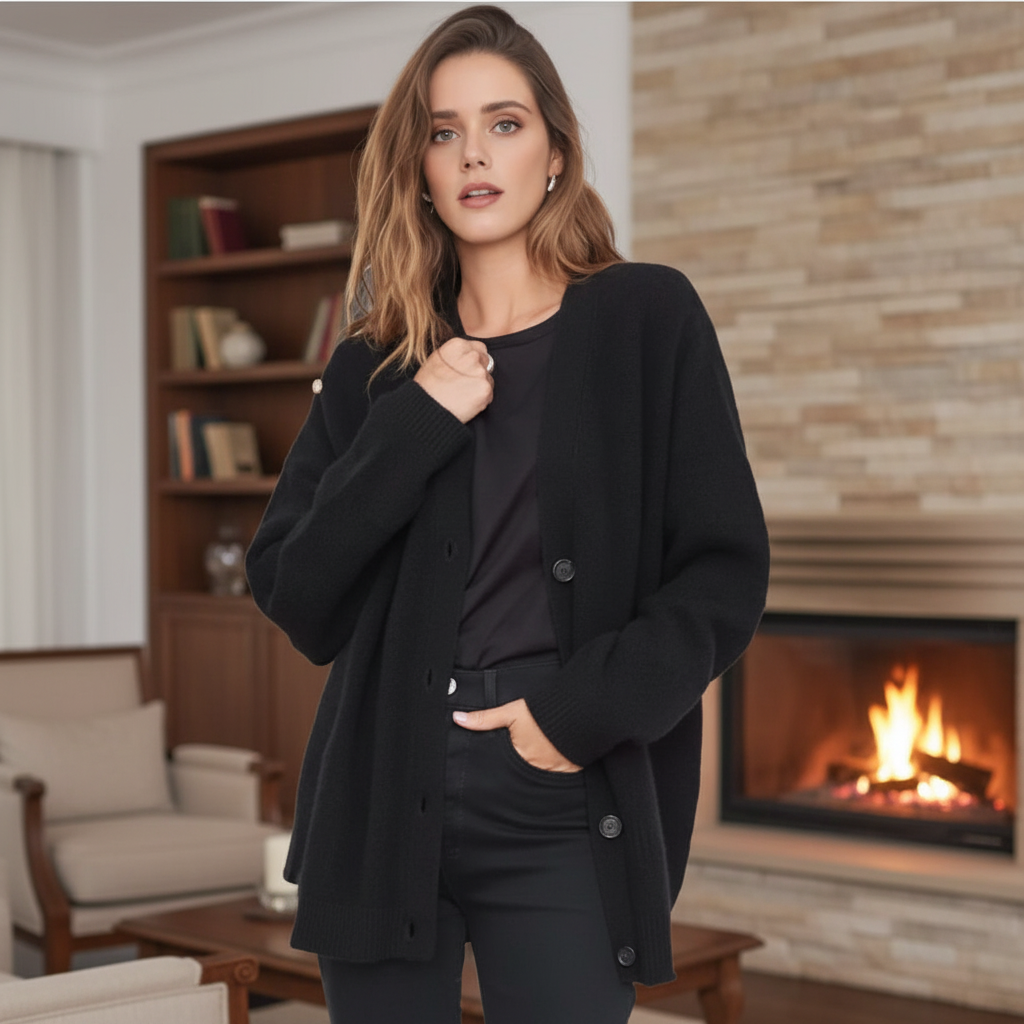 Może być trudno znaleźć idealnego towarzysza na chłodniejsze miesiące. Ten model łączy ciepło i elegancję w jednym, idealny na każdą okazję. Dekolt w kształcie V i luźny krój oferują nie tylko styl, ale także wysoki komfort noszenia. Połącz go z dżinsami lub sukienkami, aby uzyskać bezproblemowy wygląd.