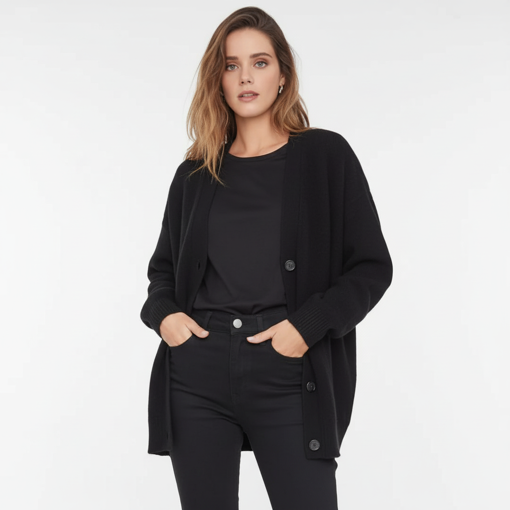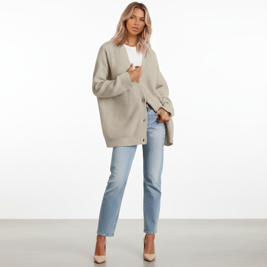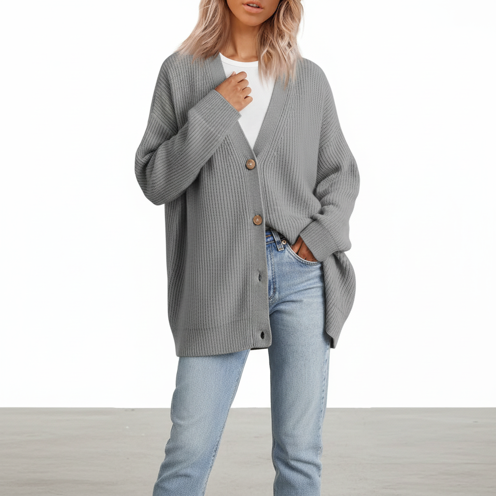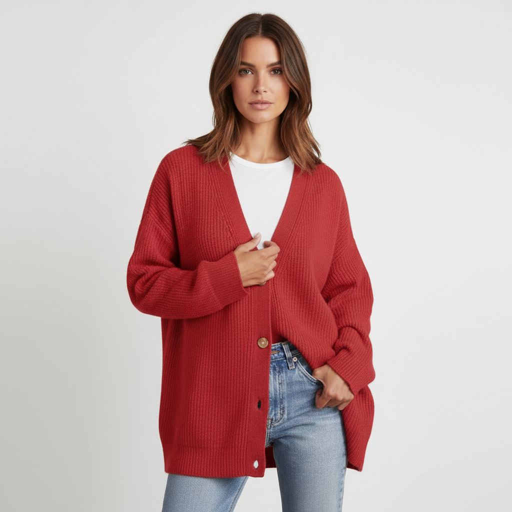 Może być trudno znaleźć idealnego towarzysza na chłodniejsze miesiące. Ten model łączy ciepło i elegancję w jednym, idealny na każdą okazję. Dekolt w kształcie V i luźny krój oferują nie tylko styl, ale także wysoki komfort noszenia. Połącz go z dżinsami lub sukienkami, aby uzyskać bezproblemowy wygląd.