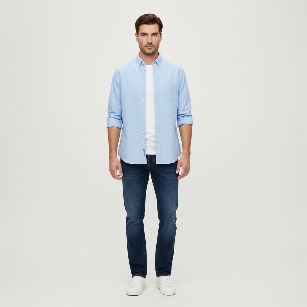 Odśwież swoją garderobę dzięki męskiej niebieskiej koszuli nakładanej, łączącej swobodny styl z eleganckim wykończeniem. Wykonana z lekkiego, a zarazem wytrzymałego materiału, doskonale sprawdzi się jako warstwa wierzchnia lub samodzielna koszula. To idealny wybór na sezon przejściowy — zapewnia wygodę, nowoczesny wygląd i wszechstronność w każdej stylizacji.