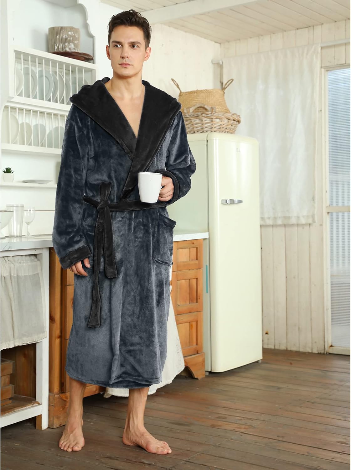 Luksusowy płaszcz kąpielowy dla mężczyzn - Robbie-ciemnoszary-S/M-Trend Polska