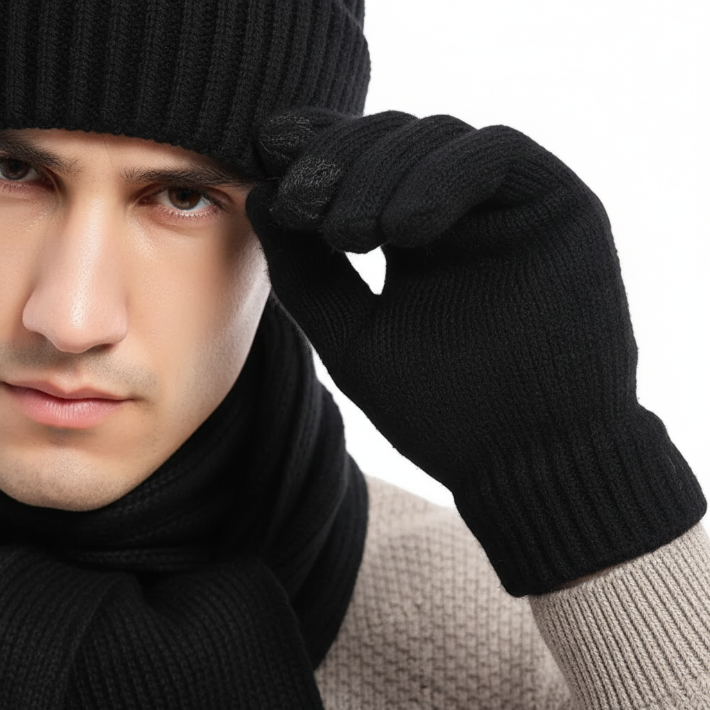 Dreiteiliges Gestricktes Winteraccessoire Set - WarmTrio