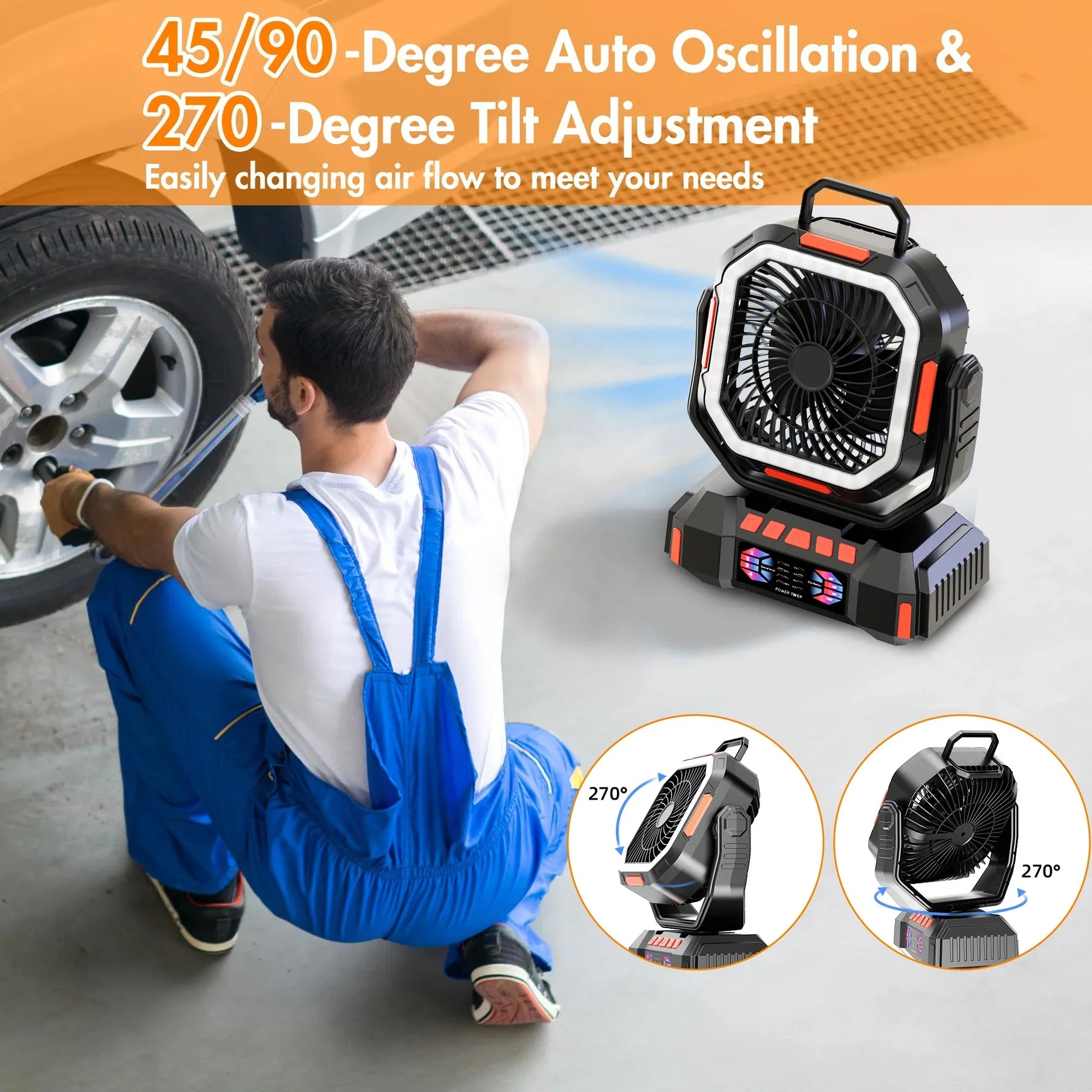 Ten przenośny wentylator campingowy z akumulatorem o pojemności 40000mAh, który także pełni funkcję powerbanku, idealnie nadaje się na dłuższe wypady i w sytuacjach awaryjnych. Łączy w sobie wentylator, latarkę i ładowarkę w jednym urządzeniu, a jego czas pracy w zależności od ustawienia prędkości i jasności wynosi od 58 do 1440 godzin. Dzięki czterem prędkościom wiatru, pięciu poziomom jasności i trzem temperaturom barwowym możesz dostosować przepływ powietrza i oświetlenie do swoich potrzeb. Automatyczna oscylacja, regulowany kąt i hak do zawieszenia 360° zapewniają wygodę i elastyczność w namiotach, chatkach lub w czasie awarii prądu.