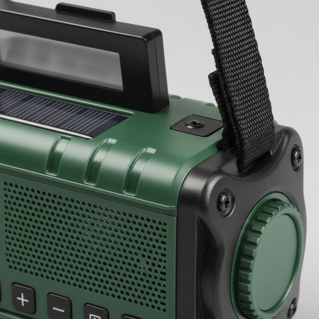Radio awaryjne odbiera ważne komunikaty i ostrzeżenia pogodowe, nawet bez prądu. Wbudowana latarka zapewnia światło w ciemnych sytuacjach.