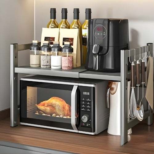 Ten organizer do mikrofalówki jest zaprojektowany tak, aby pasował do różnych rozmiarów mikrofalówek, z regulowaną panelem nośnym dla elastyczności. Solidna, wielowarstwowa konstrukcja zapewnia stabilną przestrzeń do przechowywania przypraw, przyborów i akcesoriów kuchennych oraz utrzymuje blaty w porządku. Odporna na rdzę powierzchnia i gładka powierzchnia sprawiają, że jest zarówno trwała, jak i łatwa do czyszczenia, co poprawia funkcjonalność i styl Twojej kuchni.