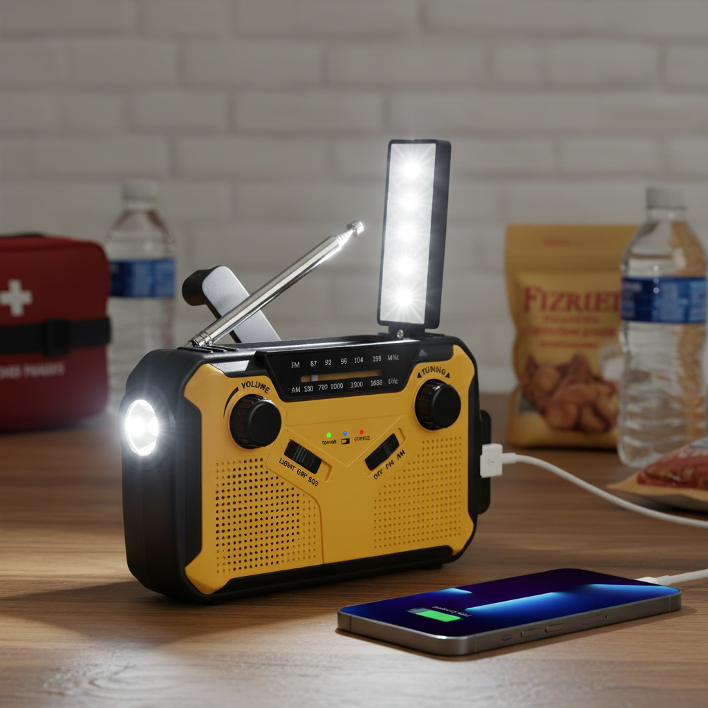 Może być niepokojące, gdy dochodzi do przerwy w dostawie prądu lub gdy nagle jesteśmy w ciemności i bez połączenia. To urządzenie rozwiązuje ten problem dzięki wielu źródłom energii, oświetleniu LED i wbudowanej funkcji radia. Niezależnie od tego, czy to korba ręczna, panel słoneczny, czy zasilanie bateryjne, pozostaje niezawodne i gotowe do użycia. Wbudowany sygnał SOS zwiększa bezpieczeństwo w sytuacjach awaryjnych.