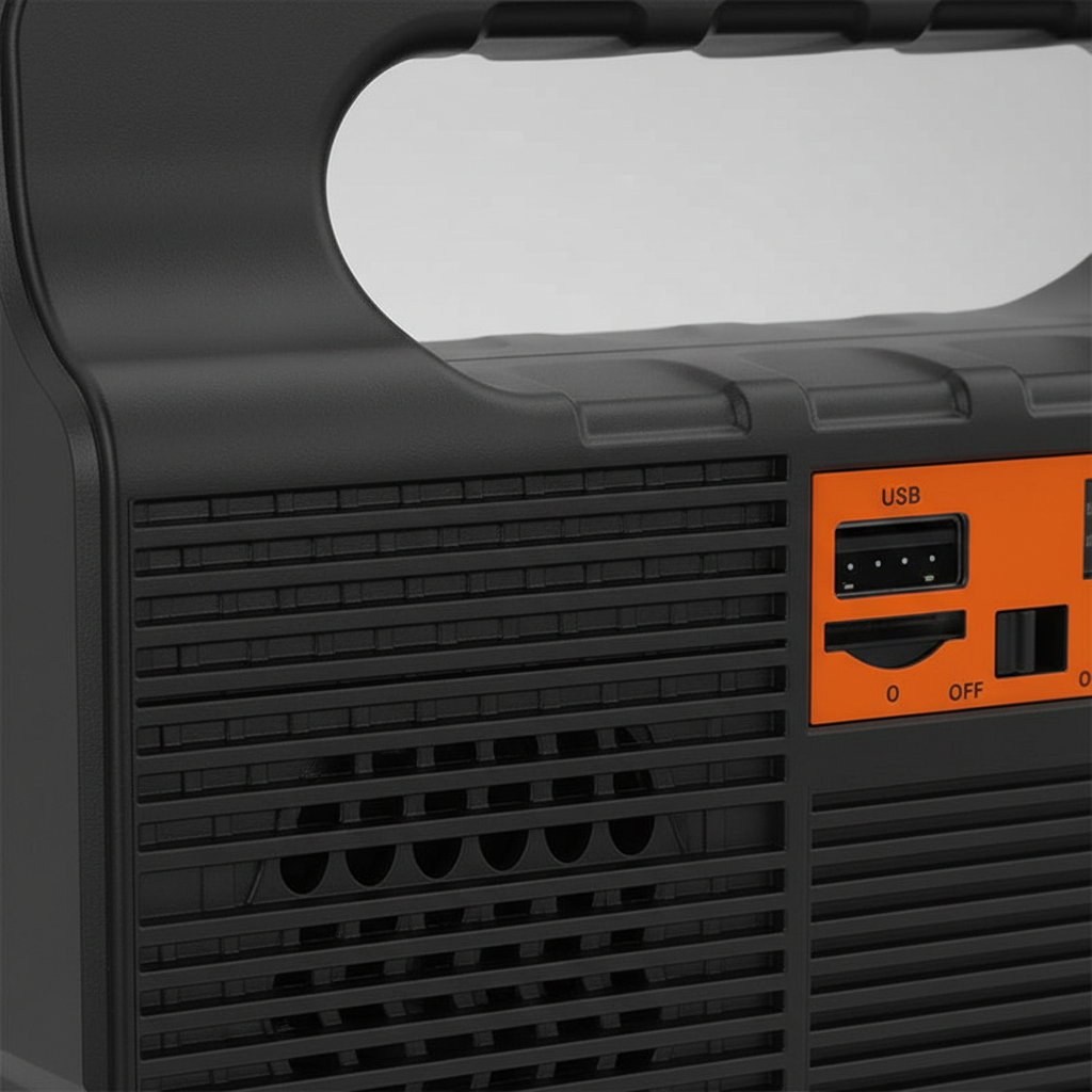 Wbudowany głośnik Bluetooth i radio FM zapewniają dźwięk. Obsługa kart USB i TF rozszerza możliwości odtwarzania.