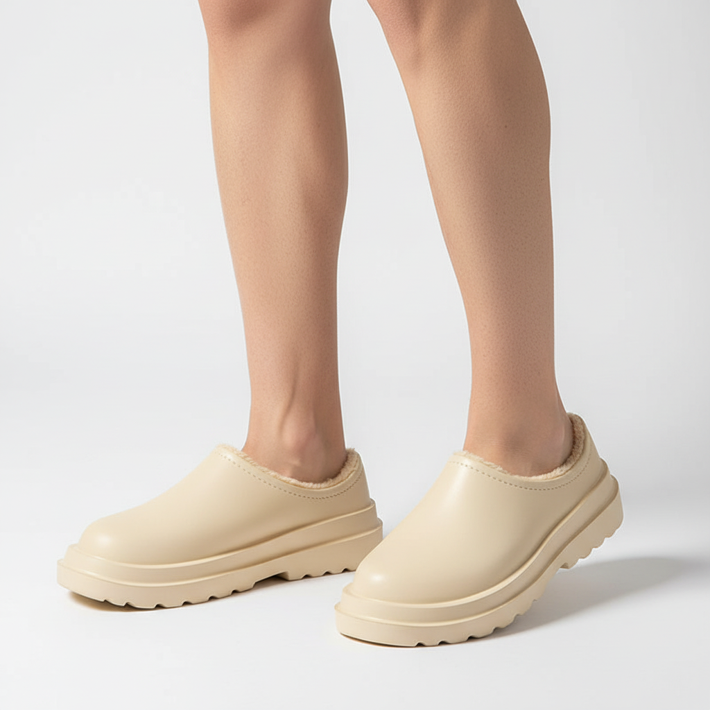 Zimne i mokre dni często utrudniają codzienne spacery. Te kapcie oferują miękką, puszystą wyściółkę wewnętrzną i wodoodporną powłokę zewnętrzną jako rozwiązanie. Dzięki temu stopy pozostają przyjemnie ciepłe, niezależnie od tego, czy jesteś w domu, czy w ogrodzie. Profilowana podeszwa zapewnia bezpieczeństwo i przyczepność na gładkich powierzchniach.