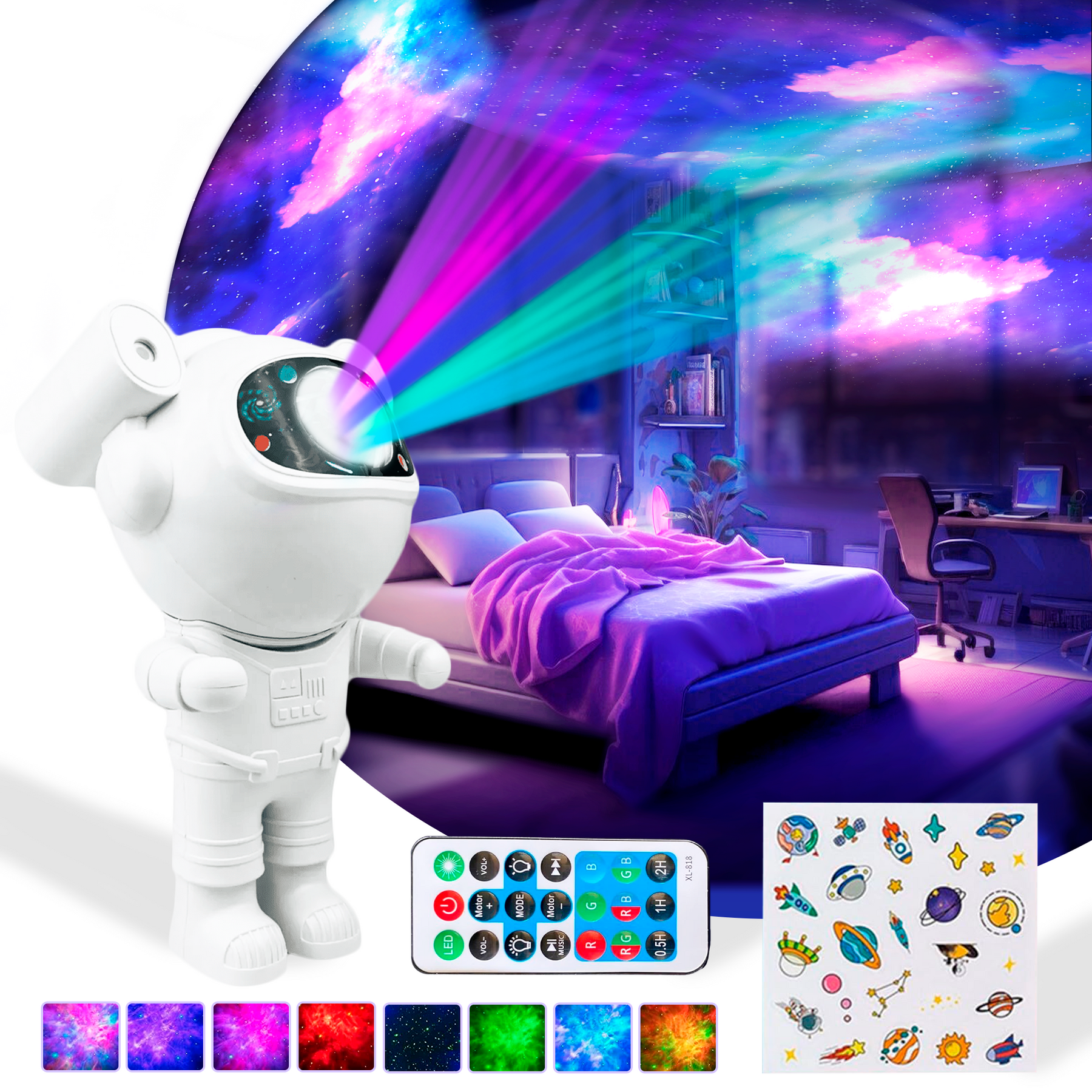 Projektor Astronauta wyróżnia się unikalnym designem inspirowanym rozgwieżdżonym niebem i galaktykami. Dzięki magnetycznie łączonej i odłączanej głowie oraz ciału umożliwia pełny obrót o 360°, co pozwala dostosować kąt projekcji mgławic. Ten innowacyjny projekt zaprasza do odkrywania gwiezdnego wszechświata, umożliwiając dostosowanie projekcji gwiazd i mgławic do własnych preferencji.