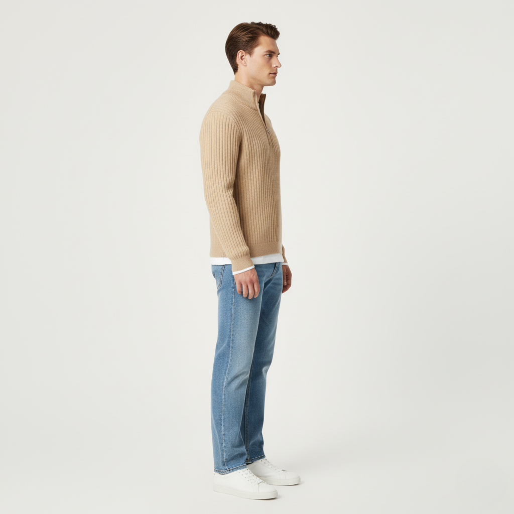 Męski Beżowo-Brązowy Sweter na Zamek