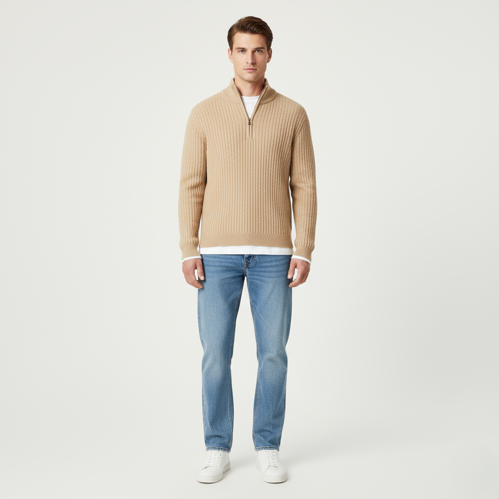 Podkreśl swój codzienny styl z męskim beżowo-brązowym swetrem na zamek, łączącym wygodę, ciepło i elegancki wygląd. Miękki materiał i praktyczne zapięcie zapewniają komfort noszenia oraz swobodę dopasowania. Neutralne kolory nadają uniwersalnego charakteru, dzięki czemu sweter doskonale sprawdzi się w pracy, na spacerze lub podczas weekendowego wypoczynku.