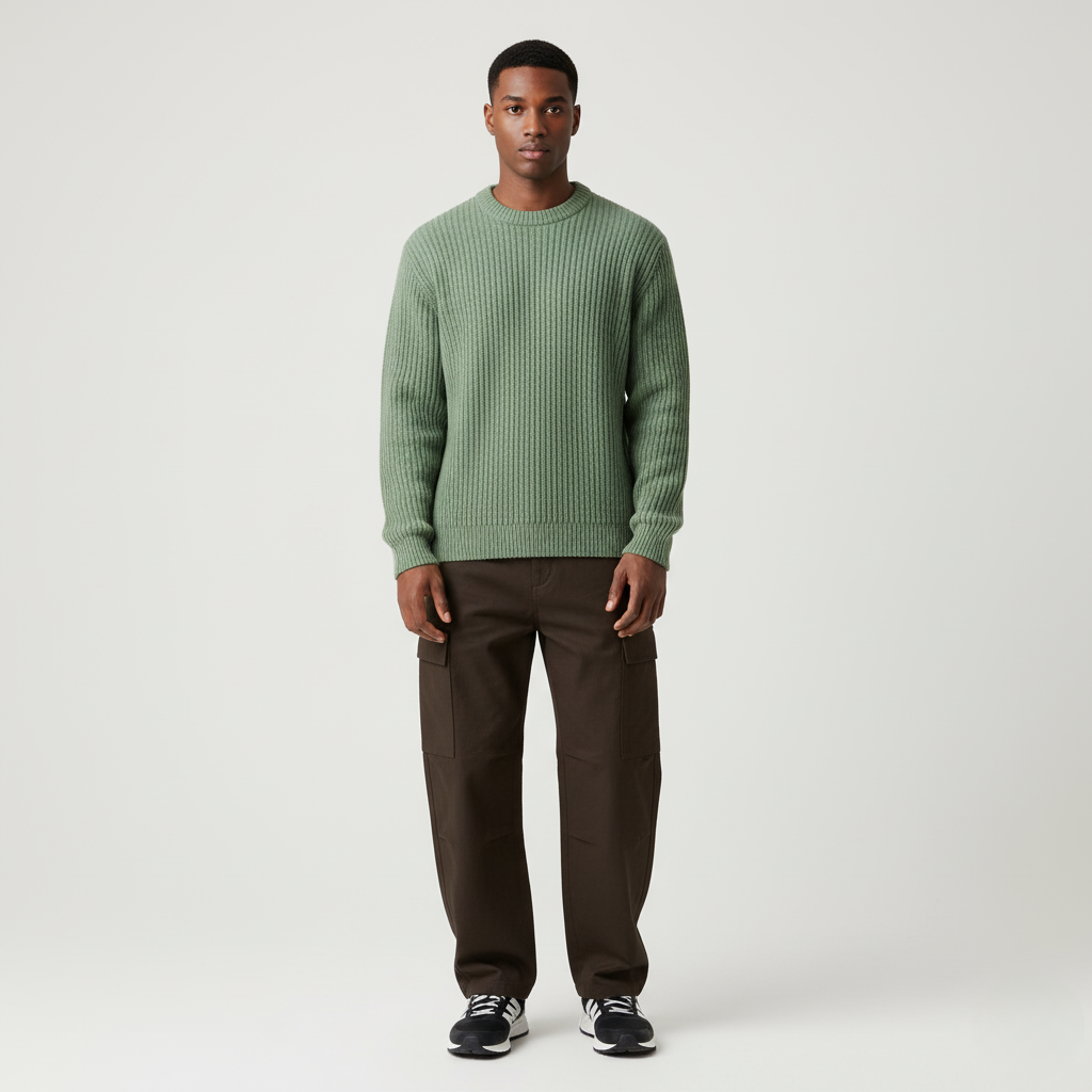 Zachowaj komfort i styl dzięki zielonemu grubemu męskiemu swetrowi z wzorem, stworzonemu z myślą o cieple, wygodzie i ponadczasowym wyglądzie. Miękki, gruby materiał doskonale chroni przed zimnem, a subtelny wzór dodaje charakteru każdej stylizacji. Świetny wybór na chłodne dni — do pracy, na spacer lub spotkania towarzyskie.