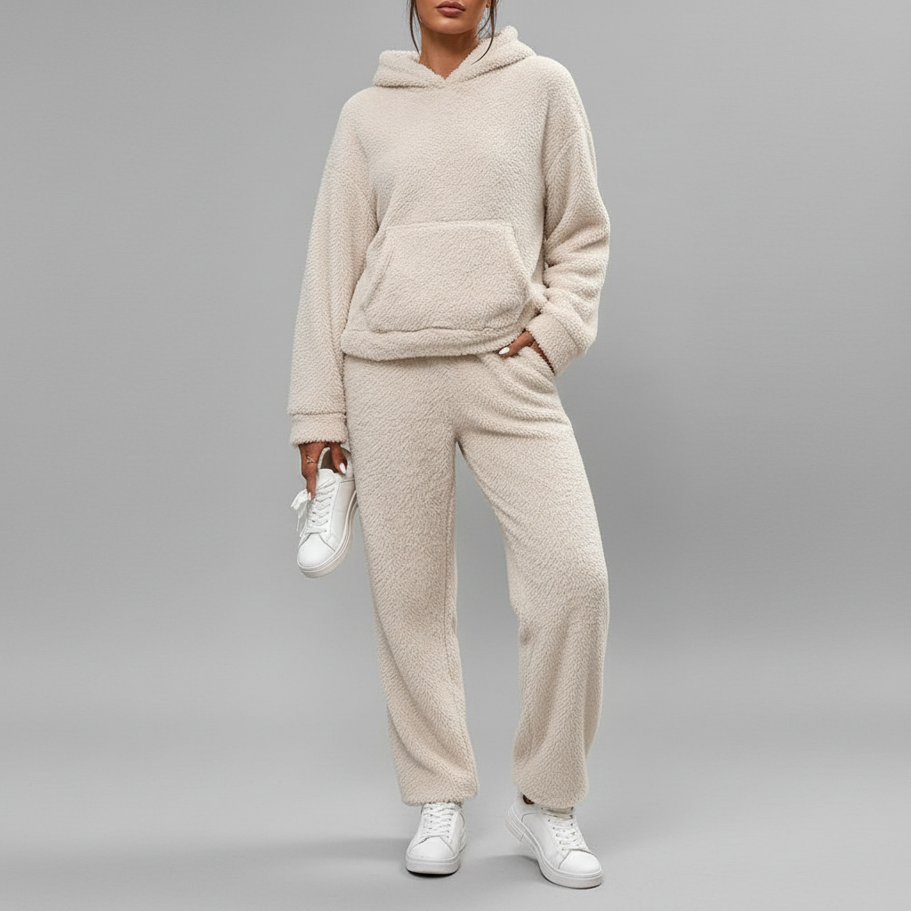 W zimowym okresie często jest wyzwaniem, aby pozostać ciepłym i wygodnym. Ten przytulny dres oferuje idealną ochronę przed zimnem, jednocześnie pozwalając Ci pozostać modnym. Z długą bluzą z kapturem i wygodnymi spodniami jest idealny na relaksujące dni w domu. Praktyczna kieszeń kangurza zapewnia, że zawsze masz wszystko pod ręką.