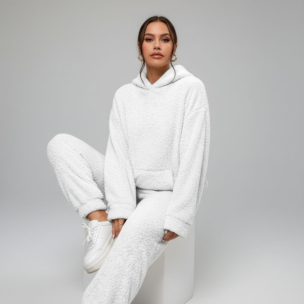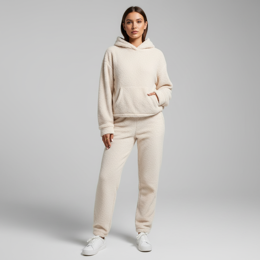 Doświadcz komfortu zimowych miesięcy w stylowym i przytulnym stroju. Ten miśkowaty dres łączy elegancję z funkcjonalnością.