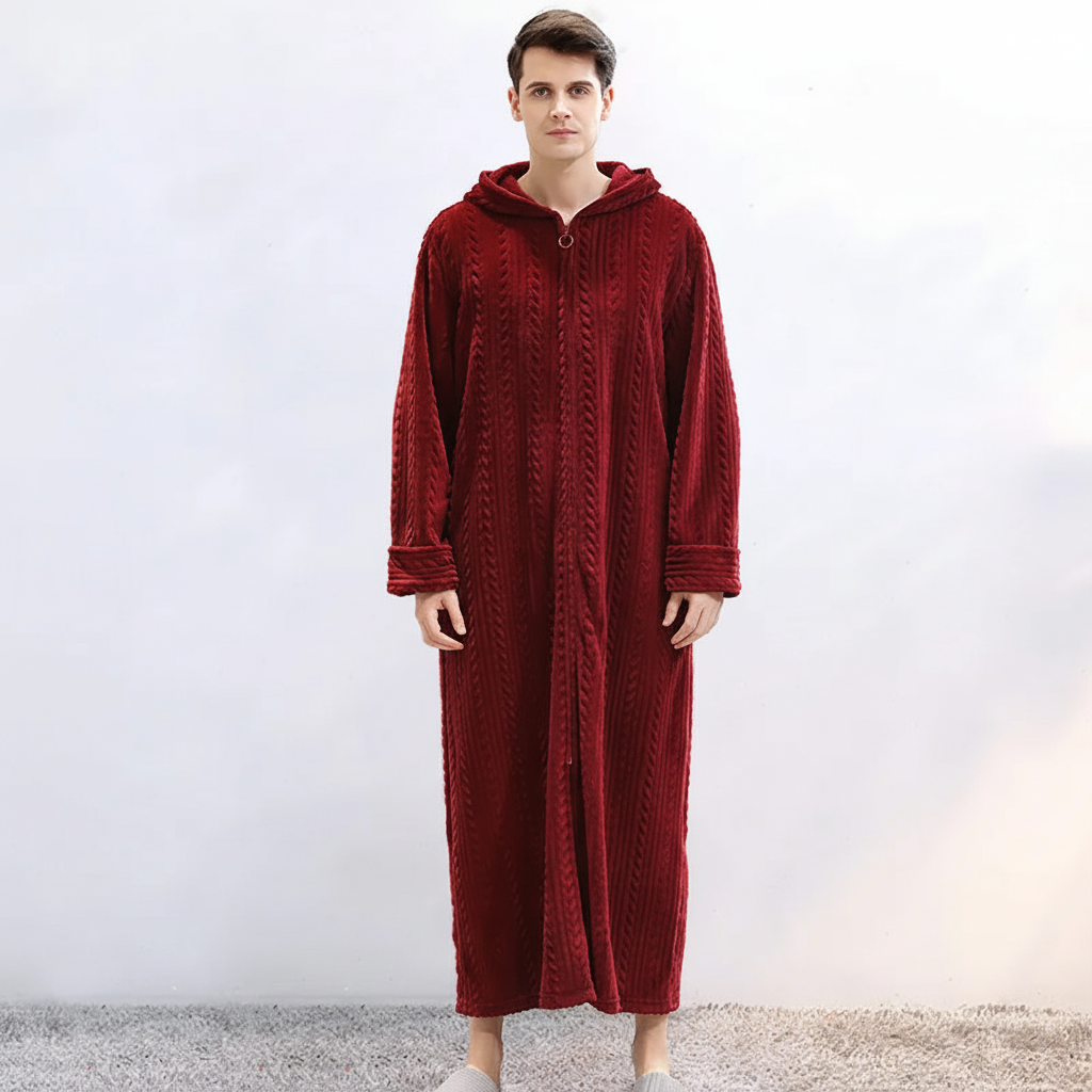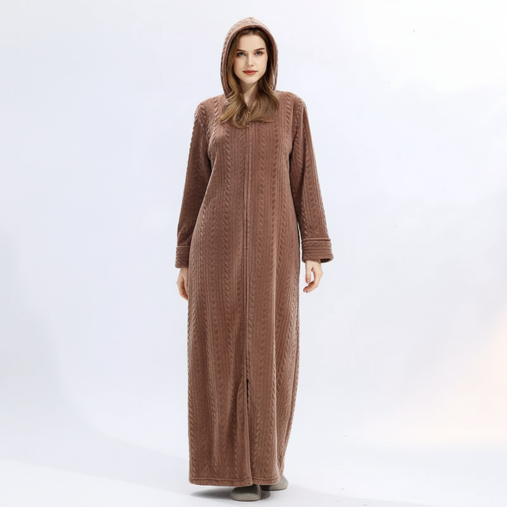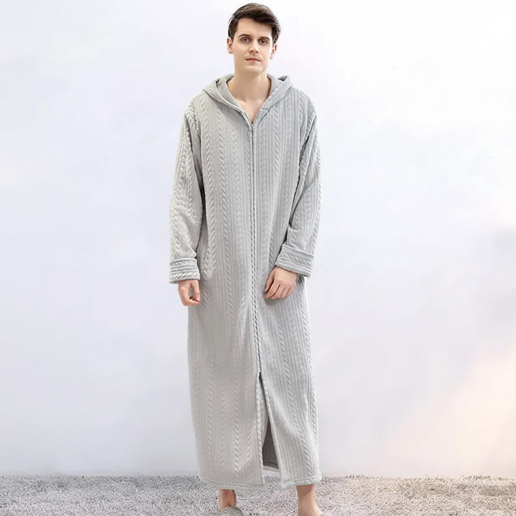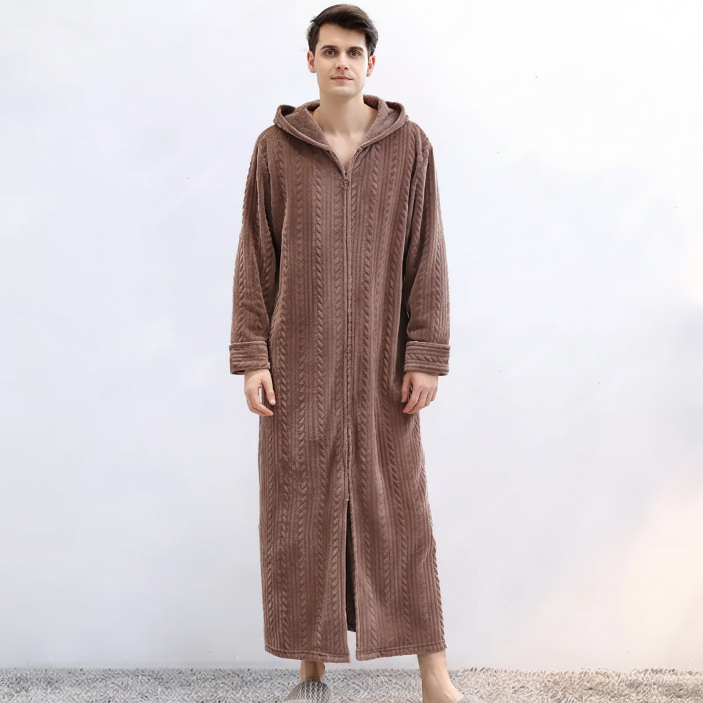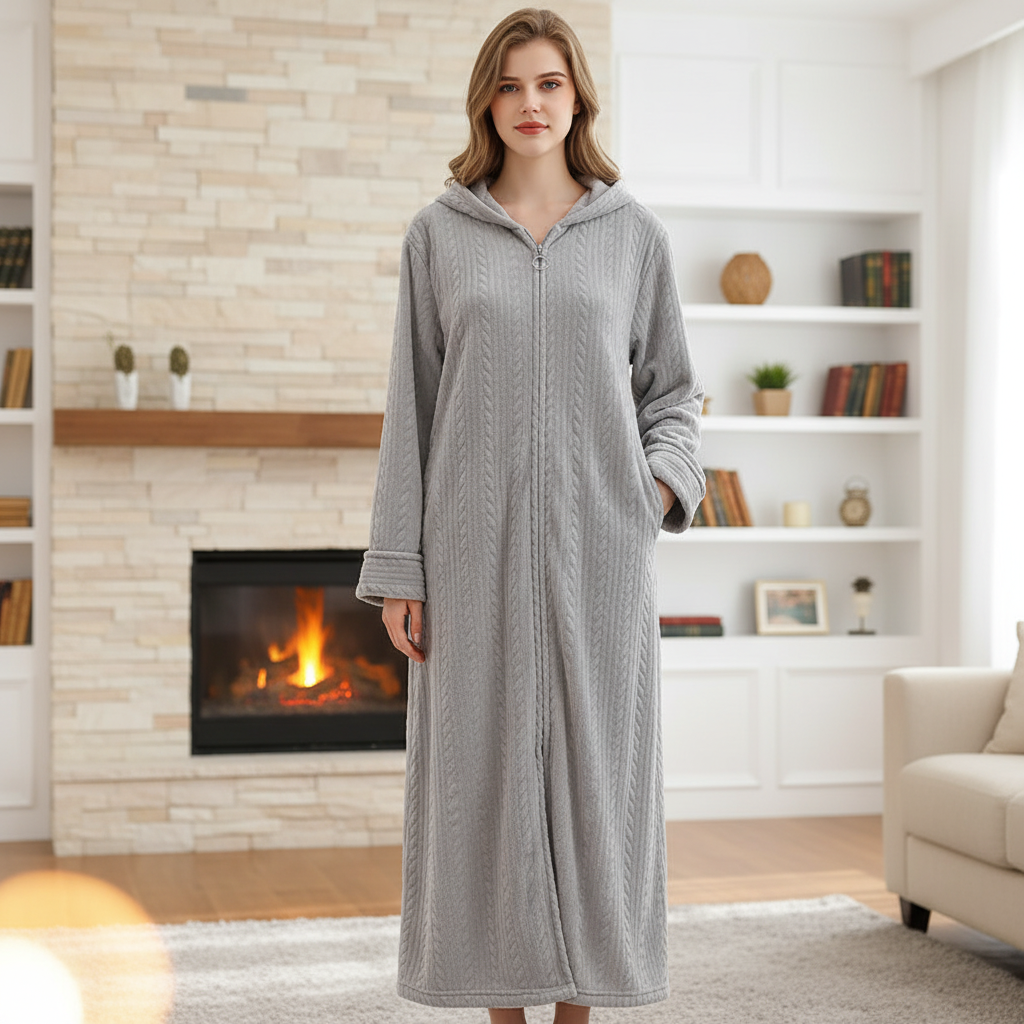 Zimne wieczory mogą czasami wydawać się samotne, gdy nie masz odpowiedniego towarzysza. Ten szlafrok oferuje nie tylko przyjemne ciepło, ale także stylowy wygląd dla par. Dzięki grubemu flanela poczujesz się komfortowo i bezpiecznie. Praktyczny kaptur i zamek błyskawiczny zapewniają dodatkowy komfort i prostotę.