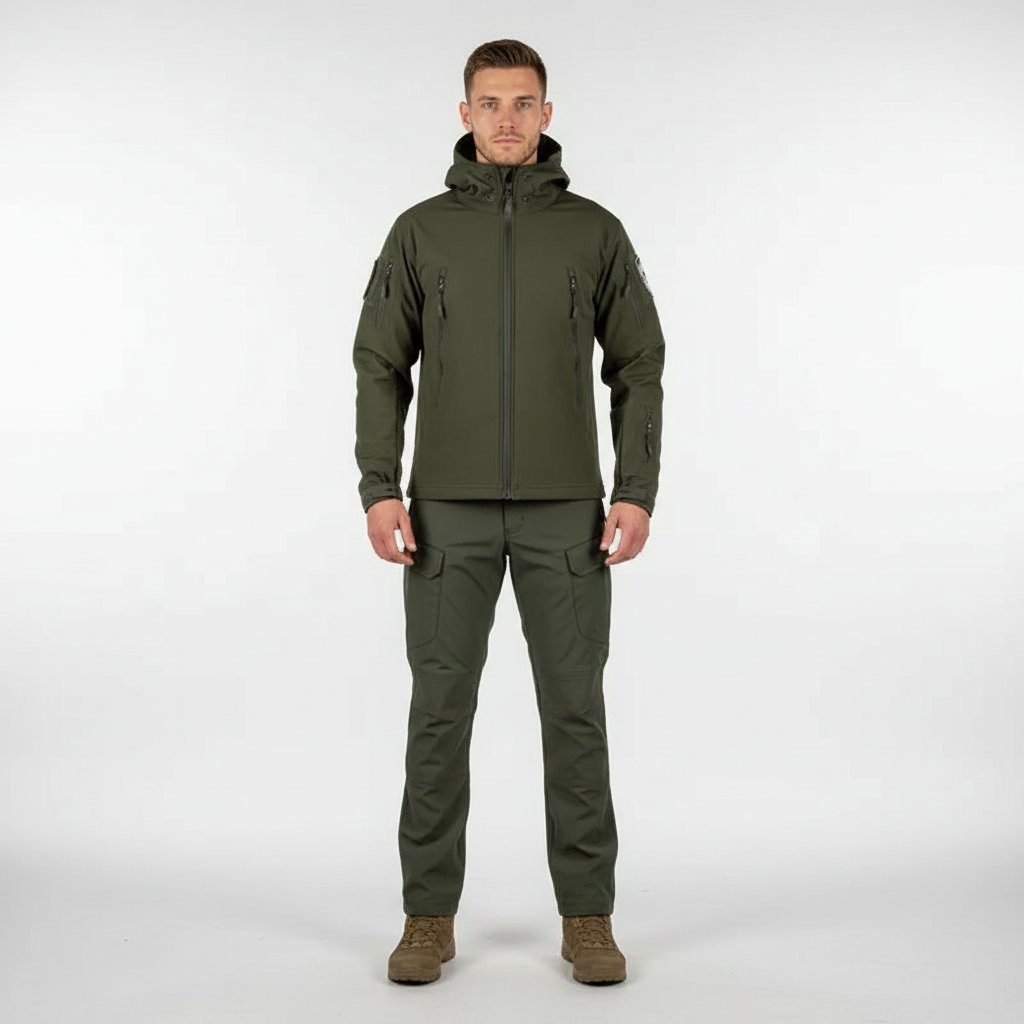 Szczególnie podczas użycia na świeżym powietrzu, ochrona przed wiatrem i deszczem jest decydująca. Ta kombinacja kurtki i spodni zapewnia dokładnie to – wodoodporne i wiatroodporne dla maksymalnego bezpieczeństwa. Regulowany kaptur i elastyczny pas zapewniają niezrównany komfort przy każdym kroku. Solidne wykonanie gwarantuje trwałość, niezależnie od warunków.