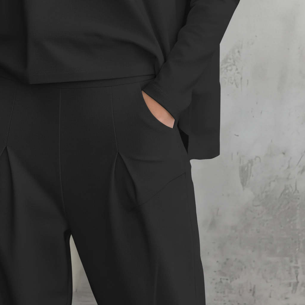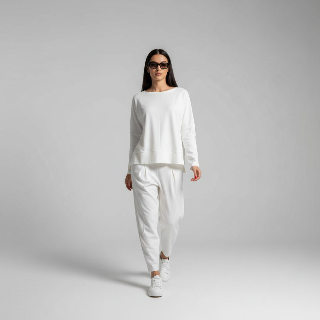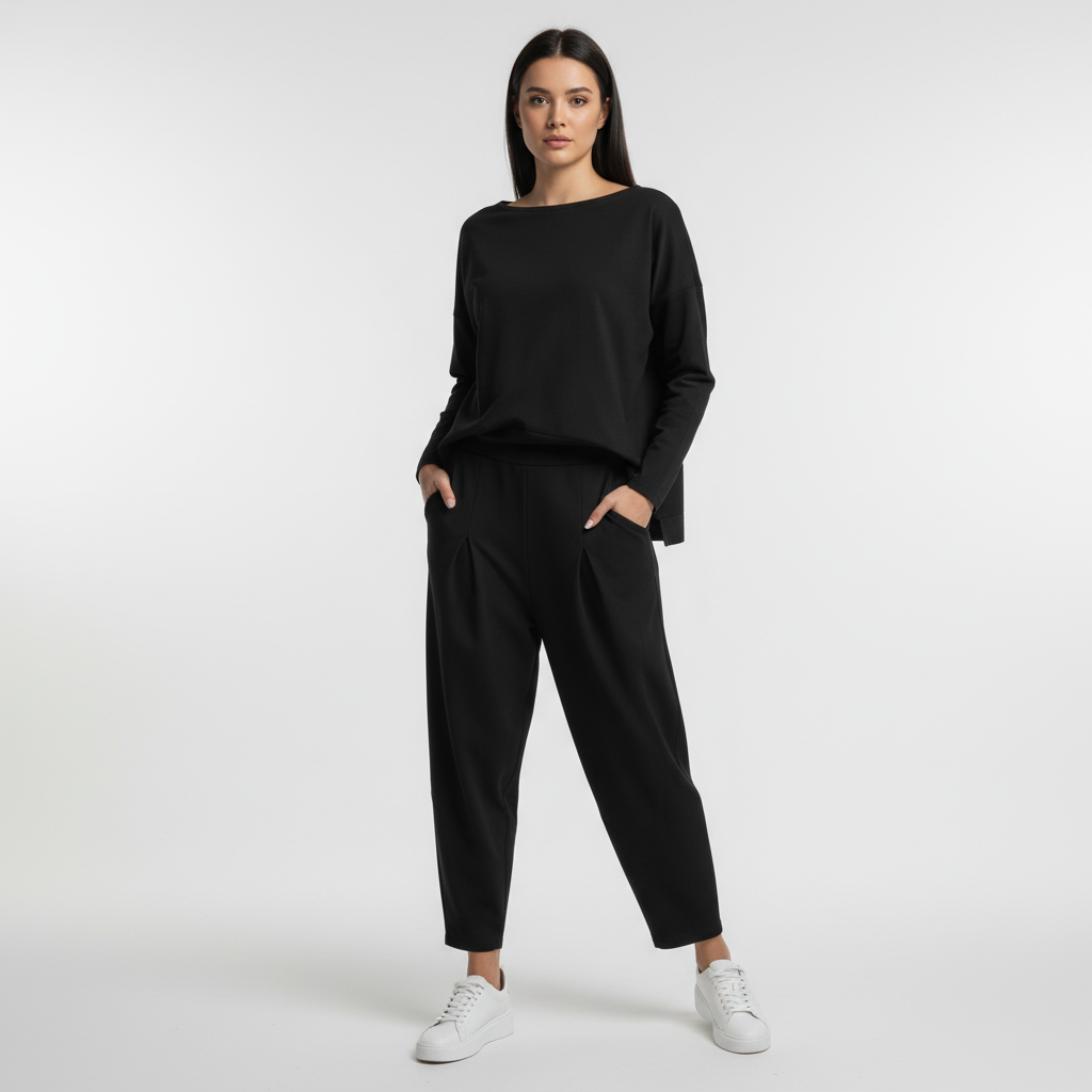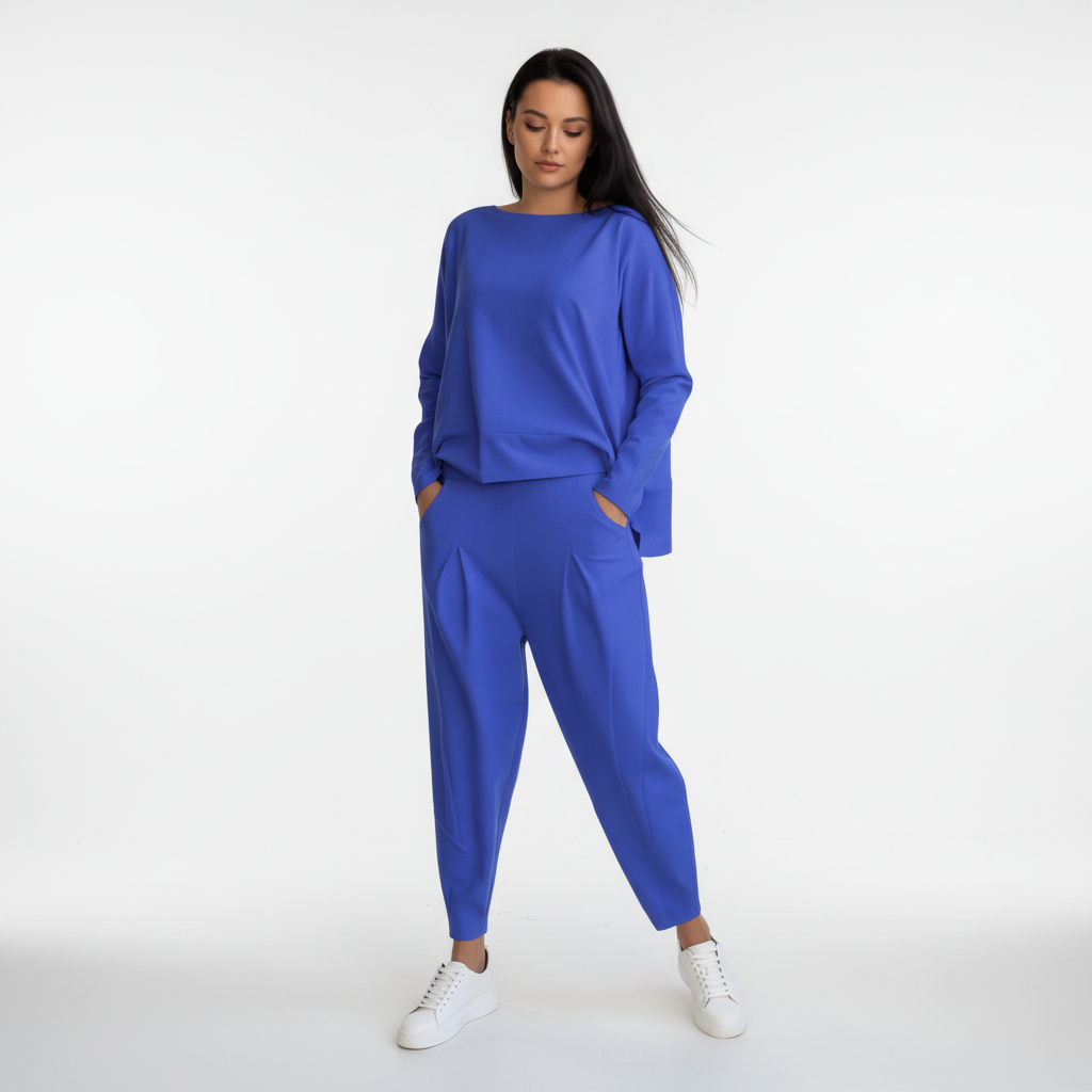 Doświadcz idealnej symbiozy stylu i komfortu. Ta kombinacja luźnej bluzki i spodni pasuje na każdą okazję.