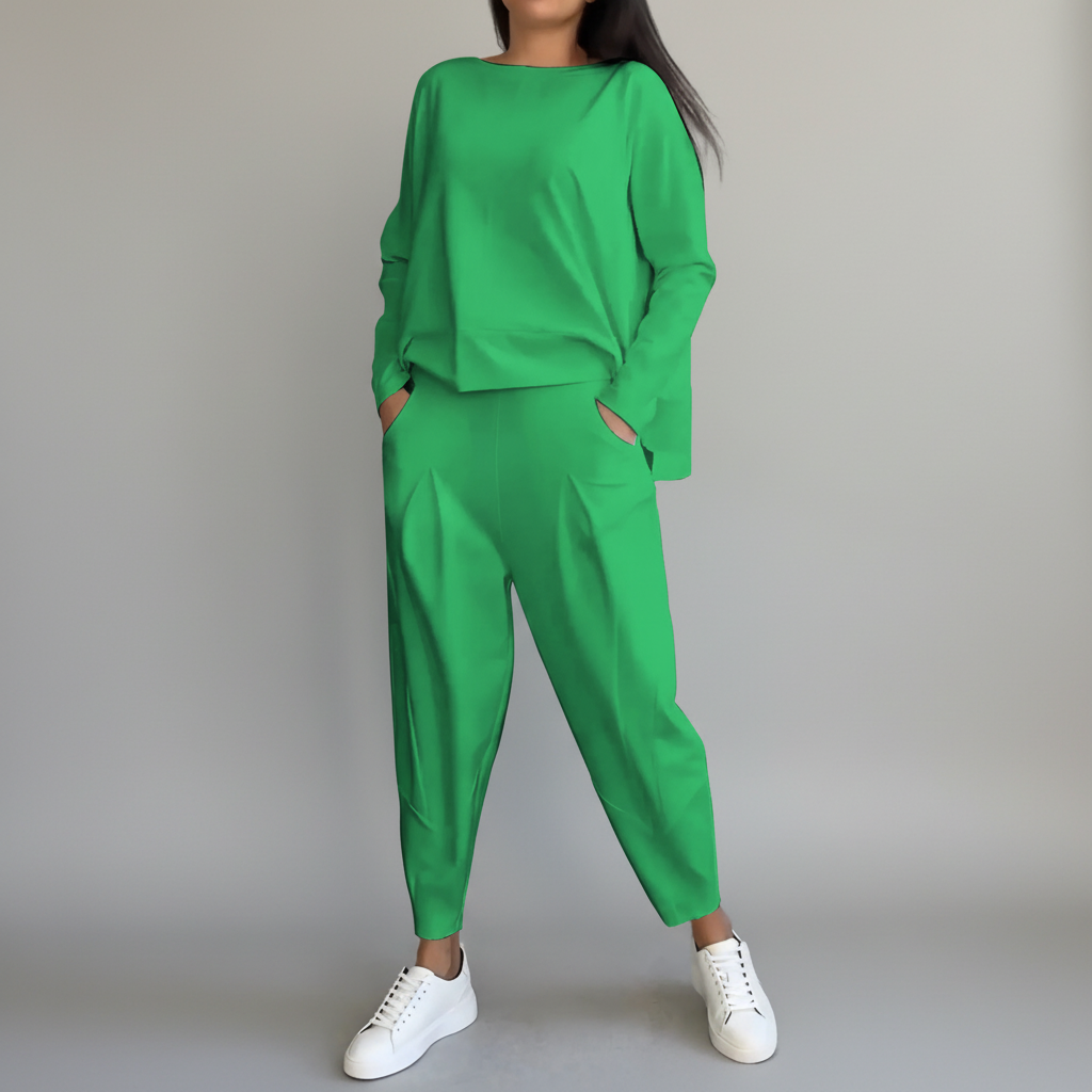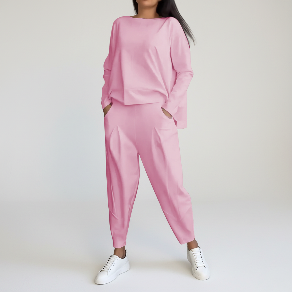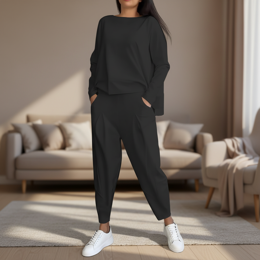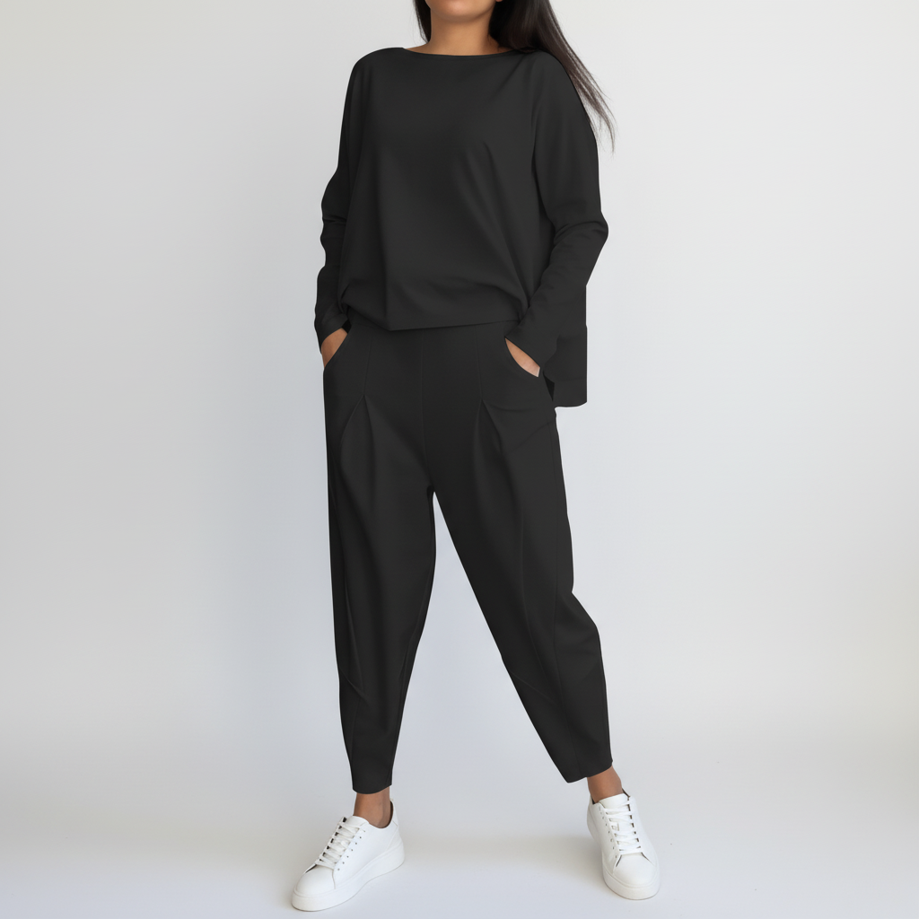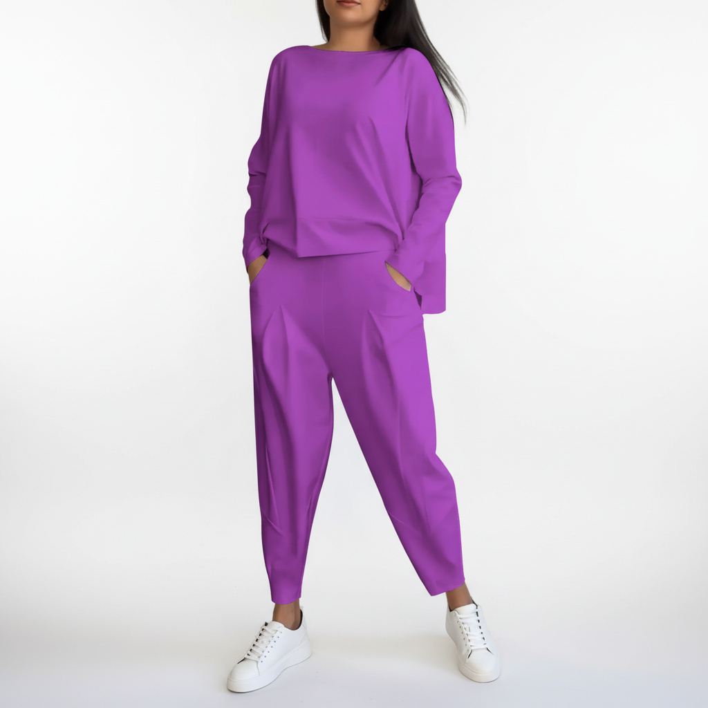 Doświadcz idealnej symbiozy stylu i komfortu. Ta kombinacja luźnej bluzki i spodni pasuje na każdą okazję.