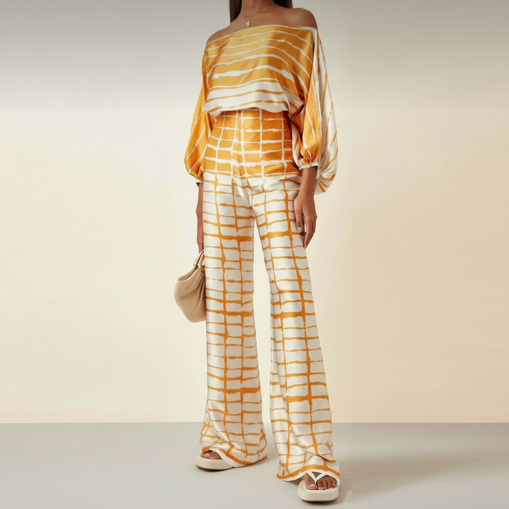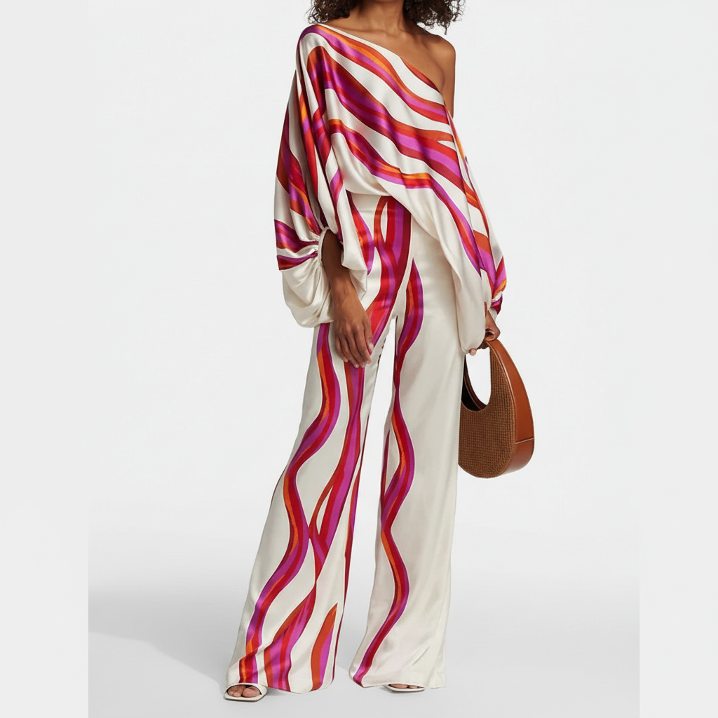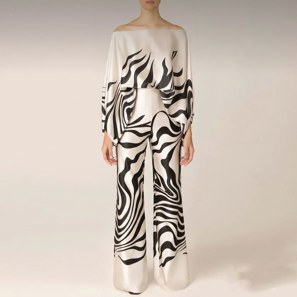 Nie zawsze jest łatwo znaleźć strój, który jest zarówno wygodny, jak i wystarczająco modny na różne okazje. Ten zestaw rozwiązuje problem dzięki luźnemu, swobodnemu krojowi oraz wyrafinowanym wzorom, które natychmiast tworzą zadbany wygląd. Dwu-elementowy zestaw składa się z szerokiego topu i pasujących spodni, co pozwala uzyskać harmonijną sylwetkę. Lekkie materiały zapewniają przyjemny komfort noszenia od ciepłych późnoletnich dni aż po chłodniejsze dni jesieni.