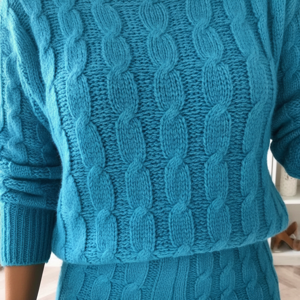 Wzór dzianiny nadaje ponadczasowy wygląd. Zawsze będziesz wyglądać stylowo i elegancko.