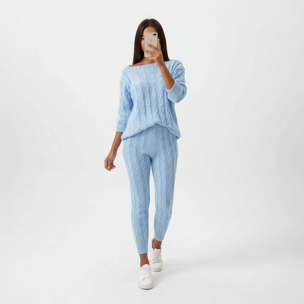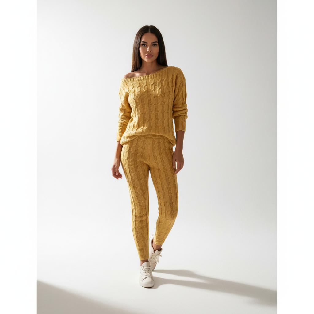 Znalezienie idealnego stroju na chłodne dni może być wyzwaniem. Ten zestaw dzianinowy łączy ciepłe, miękkie materiały z luzackim designem, który nigdy nie wychodzi z mody. Elastyczna talia i luźny krój zapewniają swobodę ruchów, której potrzebujesz, zarówno w domu, jak i w podróży. Spraw sobie ten stylowy wygląd, który jest zarówno komfortowy, jak i elegancki.
